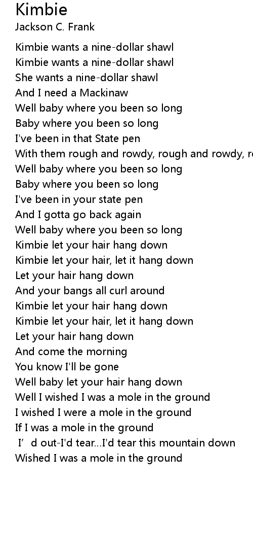 | Kimbie let your hair, let it hang down | |