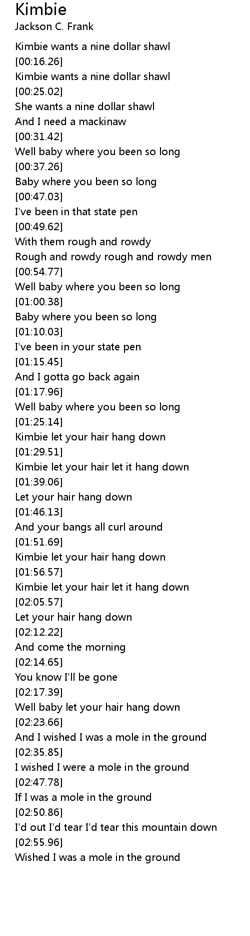[01:52.43] Kimbie let your hair hang down