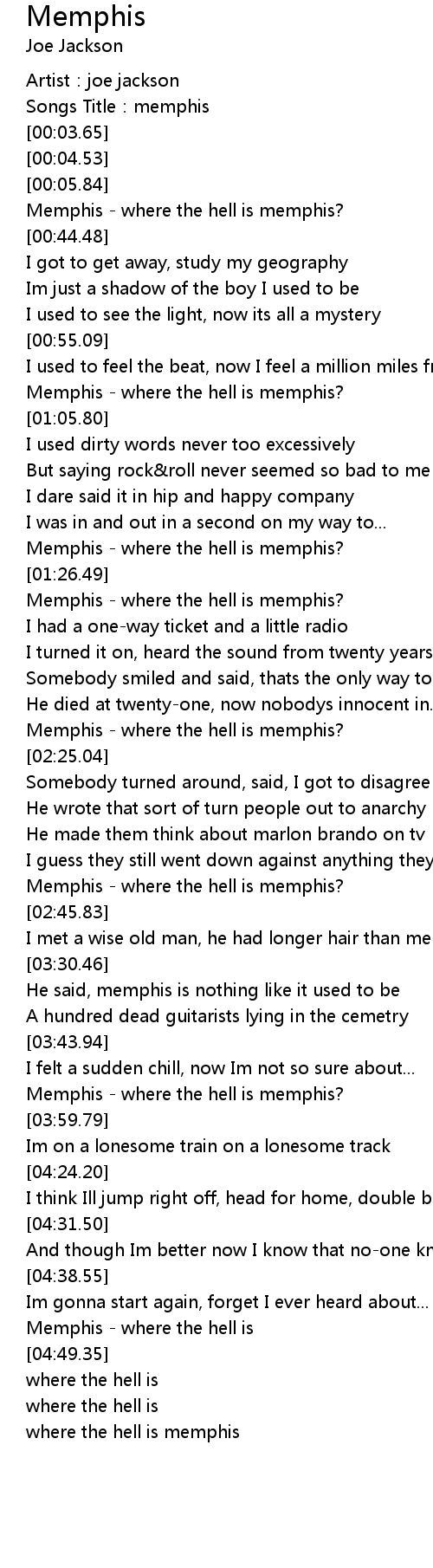 | [00:38.53] | Memphis - where the hell is memphis? |