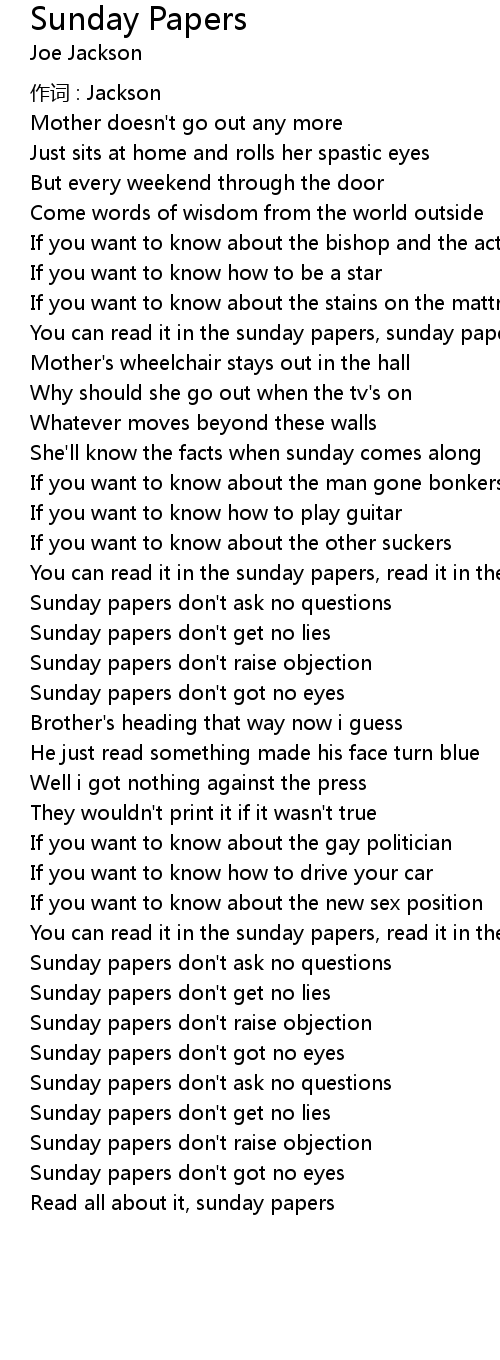 | You can read it in the sunday papers, read it in the sunday papers | |