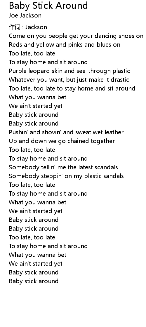 | 歌曲 | Baby Stick Around |