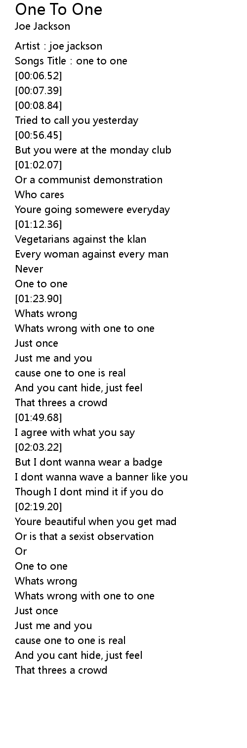 | [01:22.10] | One to one |