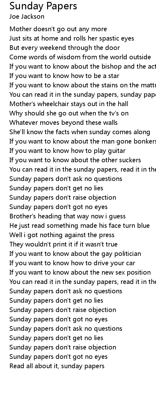 Sunday Papers 歌词