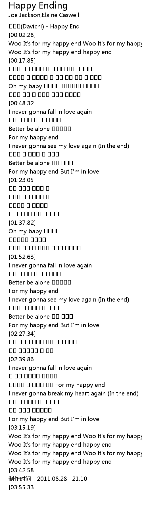 | [00:10.54] | Woo It' s for my happy end happy end |