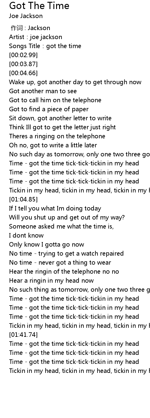 | [00:52.29] | Time - got the time tick-tick-tickin in my head |