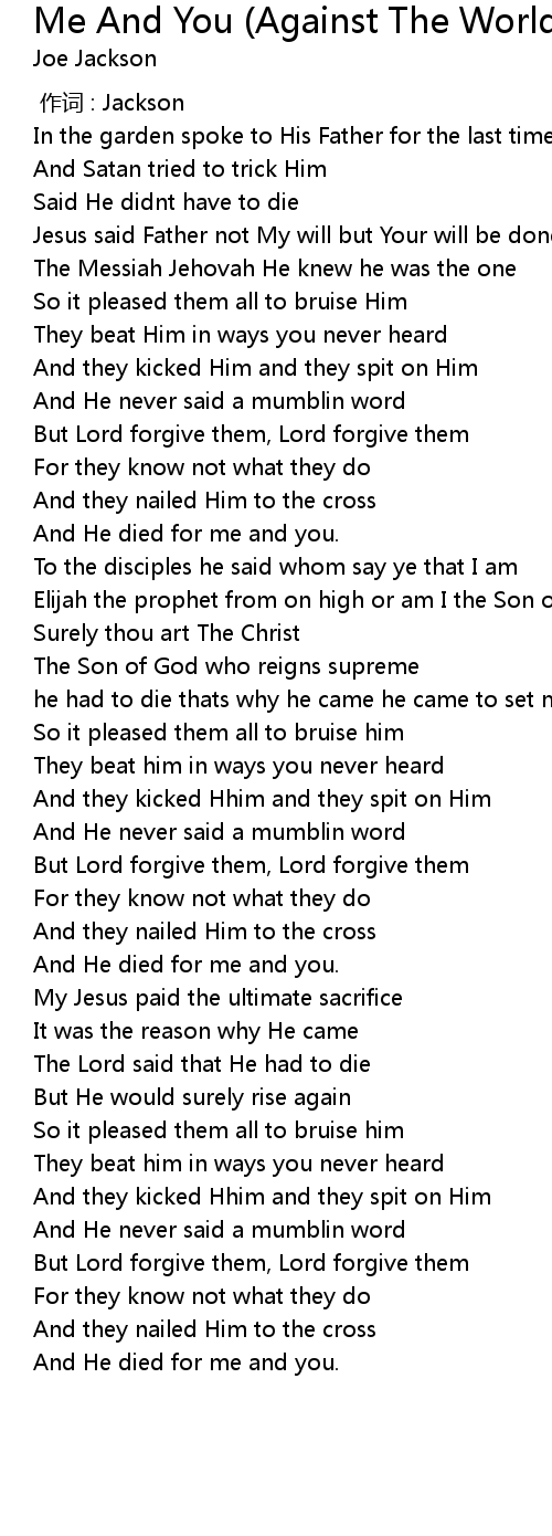 | 歌曲 | Me And You (Against The World) |