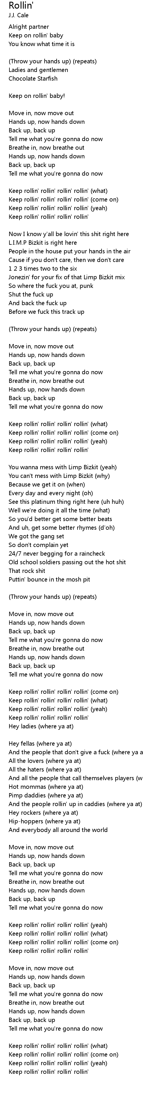 | Keep rollin' rollin' rollin' rollin' (yeah) | |