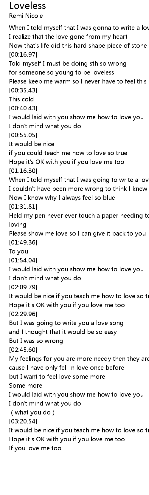 | [01:55.93] | I would laid with you show me how to love you |