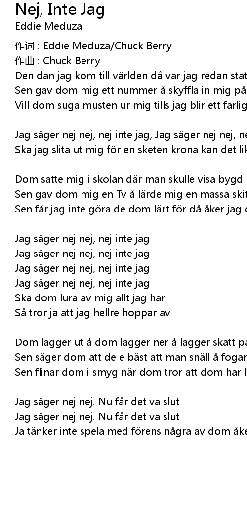 | Jag säger nej nej, nej inte jag, Jag säger nej nej, nej inte jag | |