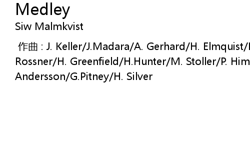 | [00:00.000] | 作曲 : J. Keller/J.Madara/A. Gerhard/H. Elmquist/R.Gilmore/S. Rossner/H. Greenfield/H.Hunter/M. Stoller/P. Himmelstrand/D. Tricker/J Leiber/S. Andersson/G.Pitney/H. Silver |