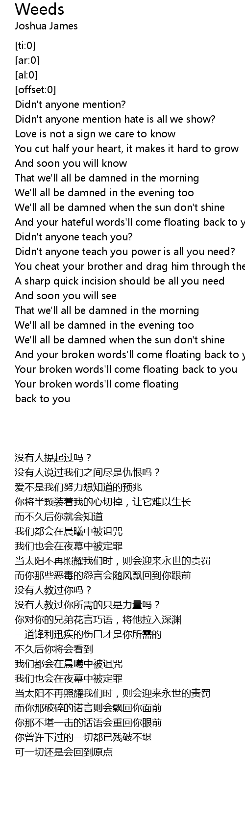 And your broken words'll come floating back to you |