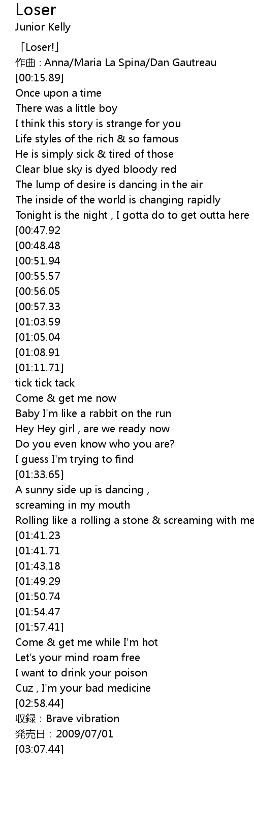 | [02:55.81][01:54.47] | Give me bad medicine |