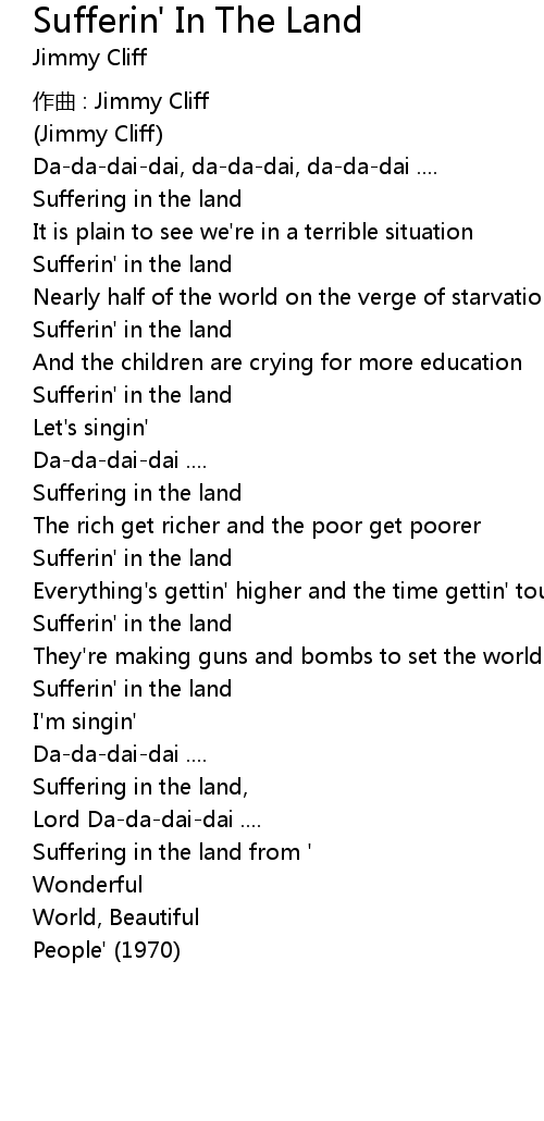 | 歌曲 | Sufferin' In The Land |