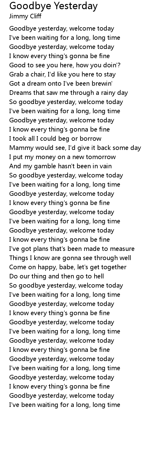 So goodbye yesterday, welcome today |