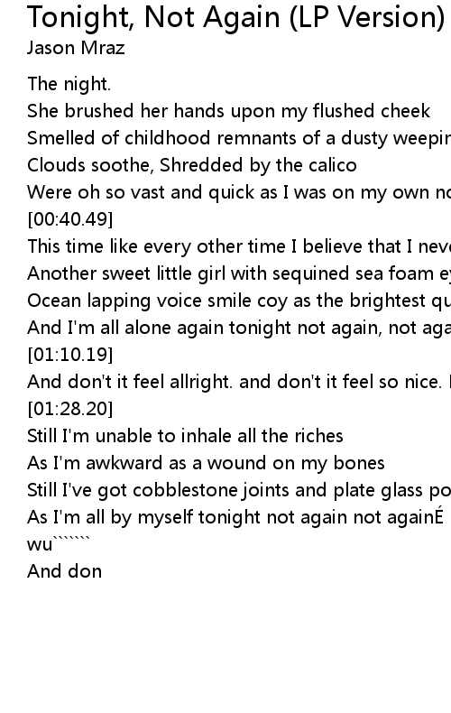 | [01:03.48] | And I' m all alone again tonight not again, not again, not again. |
