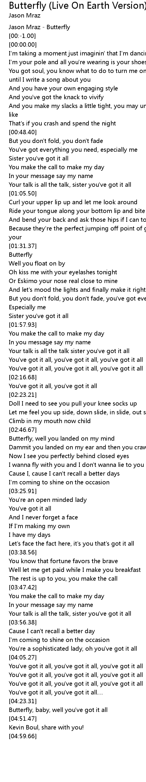 | [00:-2.00] | Jason Mraz - Butterfly |