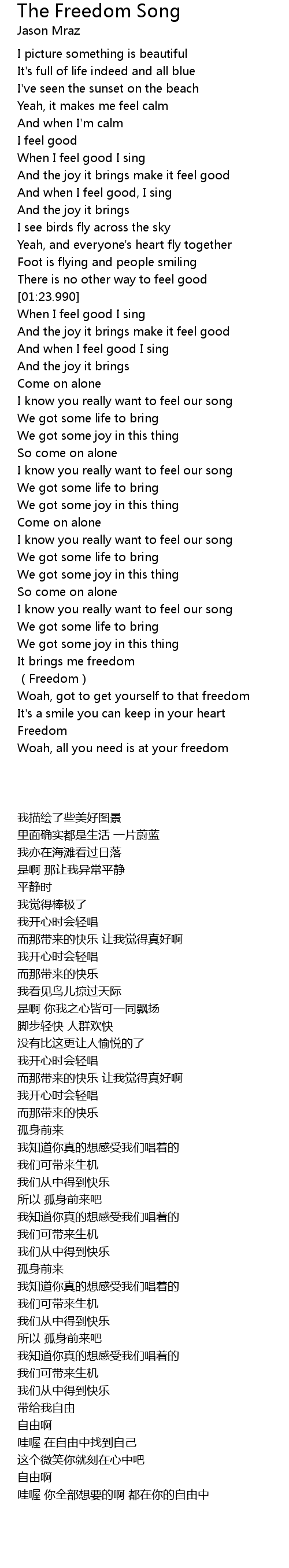 | [00:23.520] | When I feel good I sing |