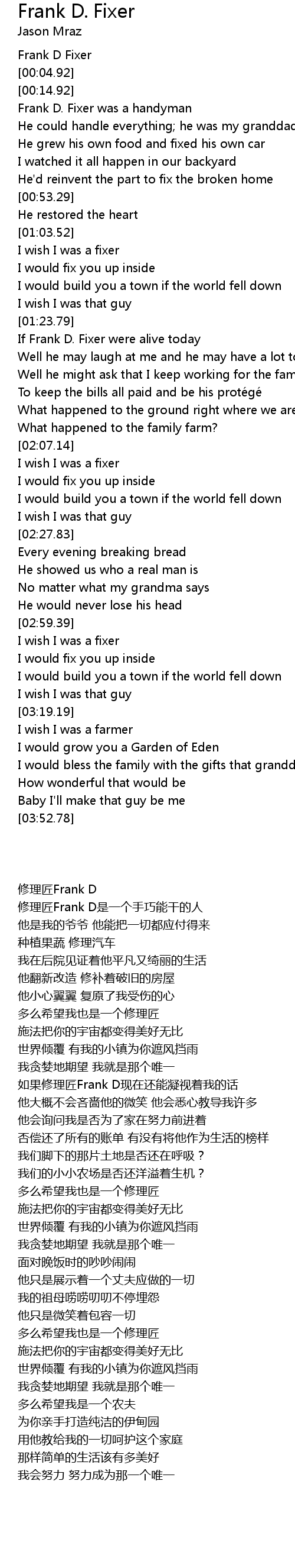 | [00:25.02] | 修理匠Frank D是一个手巧能干的人 |