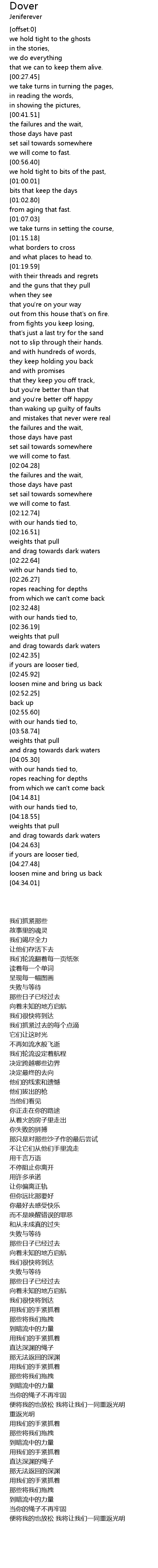 Dover 歌词
