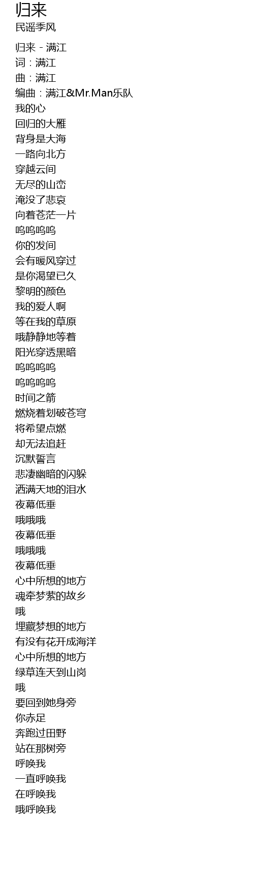 | [00:06.274] | 编曲:满江&Mr.Man乐队 |