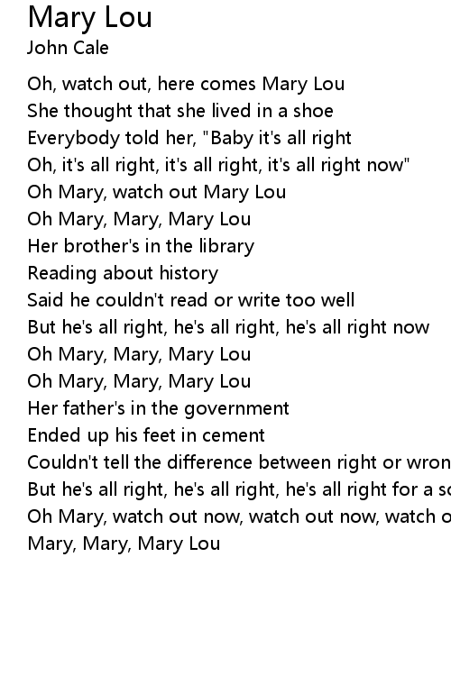 | Oh Mary, watch out now, watch out now, watch out now Mary Lou | |