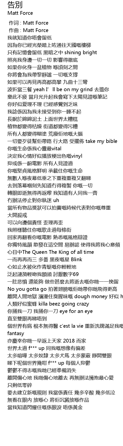 | [00:00.000] | 作词 : Matt Force |