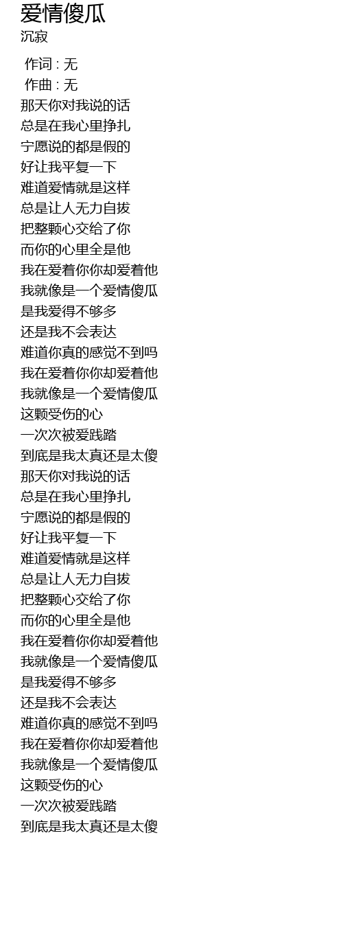 | [03:34.211] | 我就像是一个爱情傻瓜 |