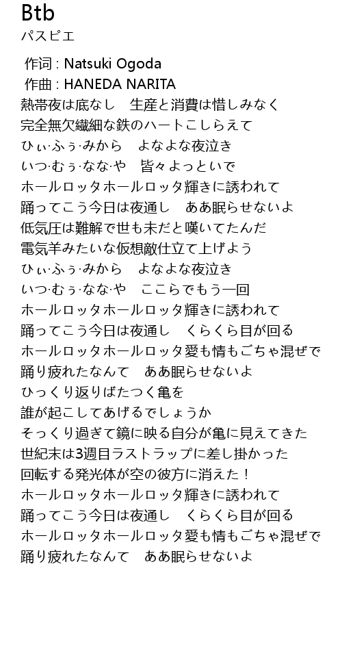 | [01:34.01] | ホールロッタホールロッタ輝きに誘われて |