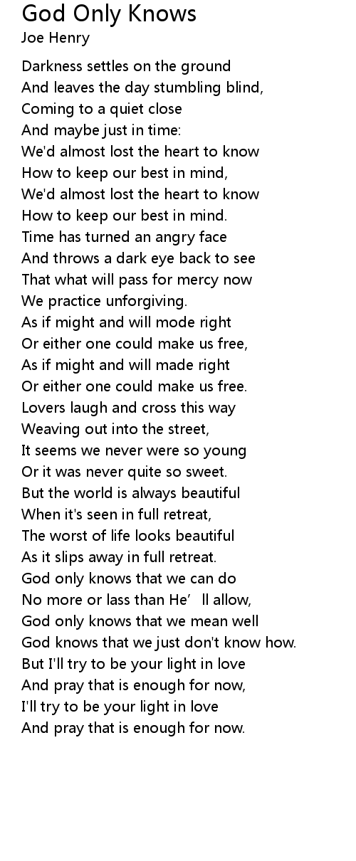 | God only knows that we can do | |