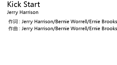 | [00:00.000] | zuo ci : Jerry Harrison Bernie Worrell Ernie Brooks Alex Mckay Weir |