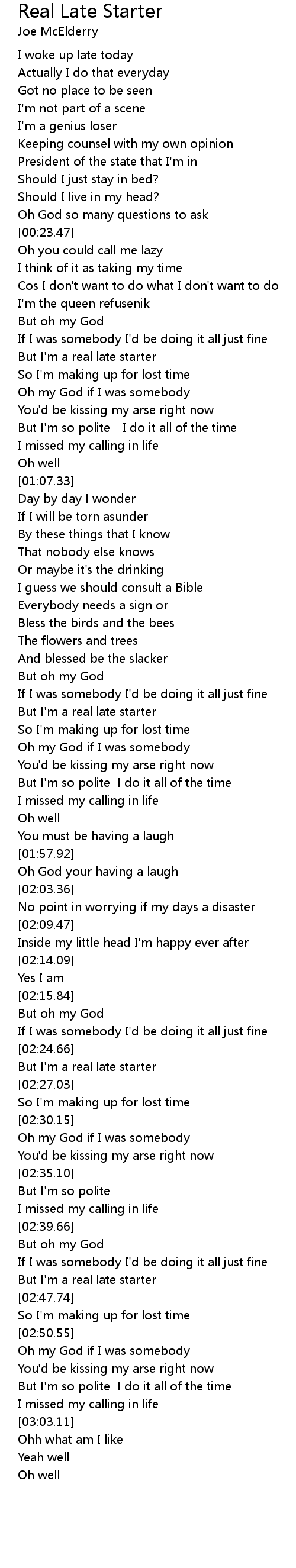 But I'm a real late starter |