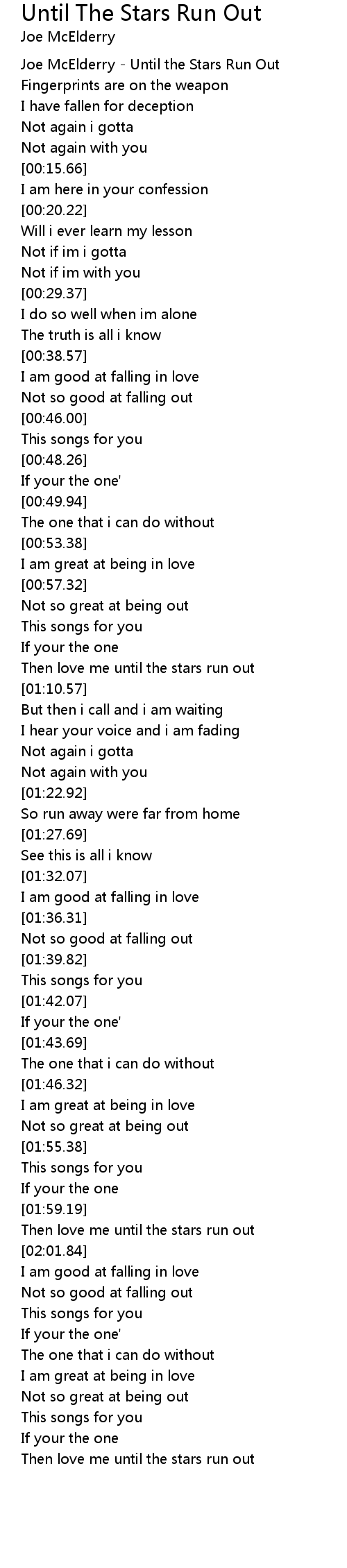 Then love me until the stars run out |