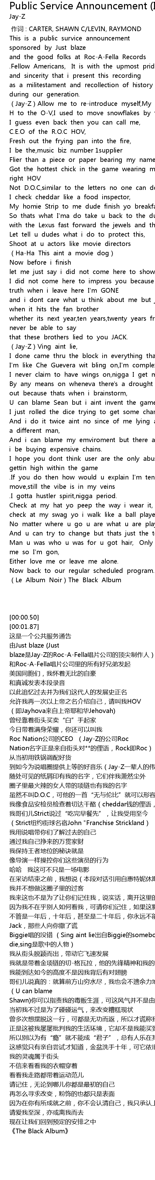 | [00:04.99] | 由Just blaze (Just blaze是Jay-Z的Roc-A-Fella唱片公司的顶尖制作人) |