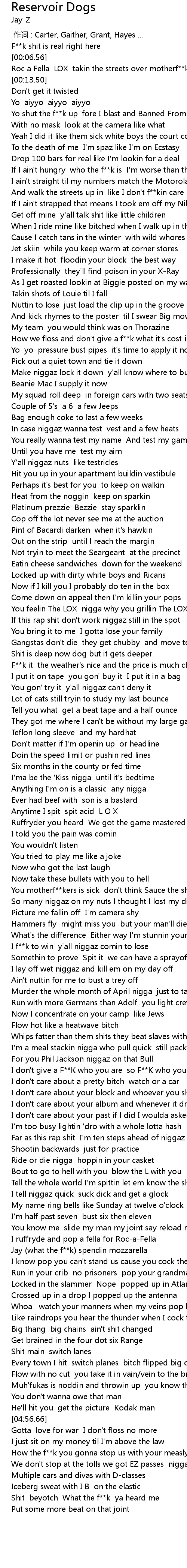 | [04:18.54] | I ruffryde and pop a fella for Roc-a-Fella |