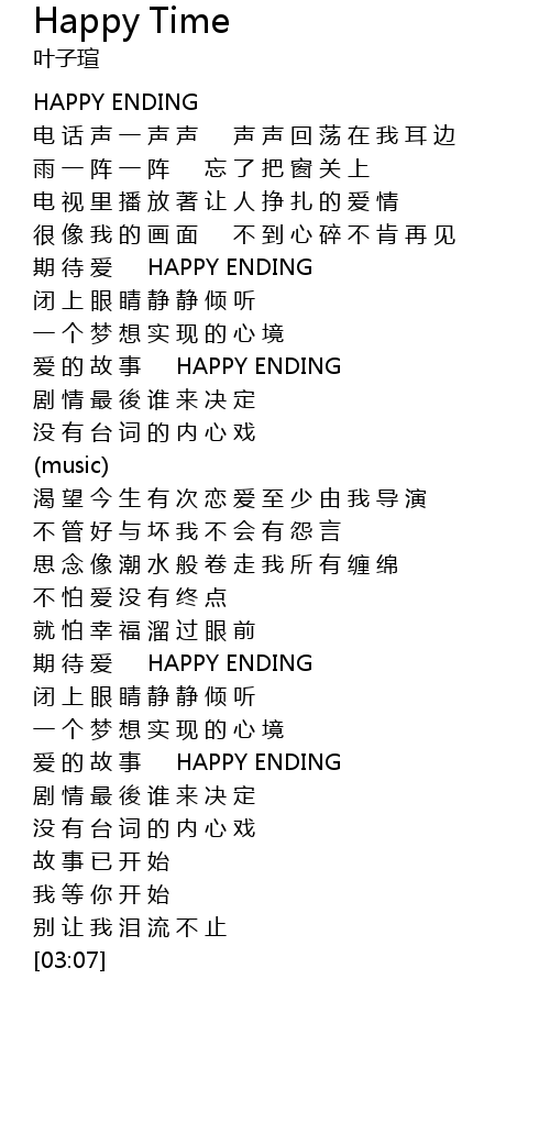 | [01:08] | 爱 的 故 事 HAPPY ENDING |