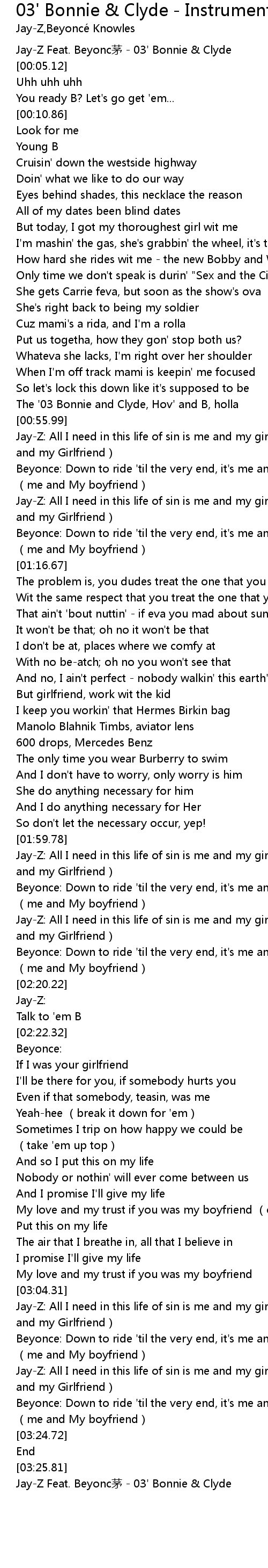 | [00:53.06] | The ' 03 Bonnie and Clyde, Hov' and B, holla |