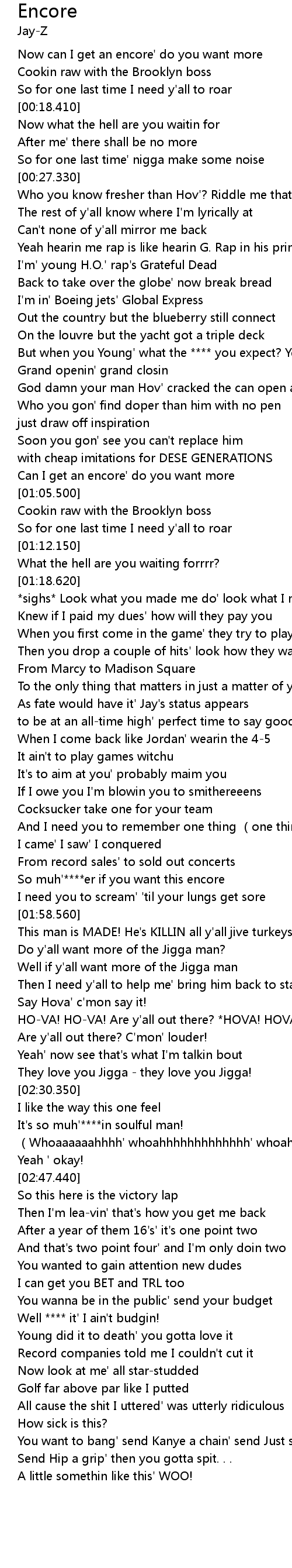 | [00:53.900] | God damn your man Hov' cracked the can open again |