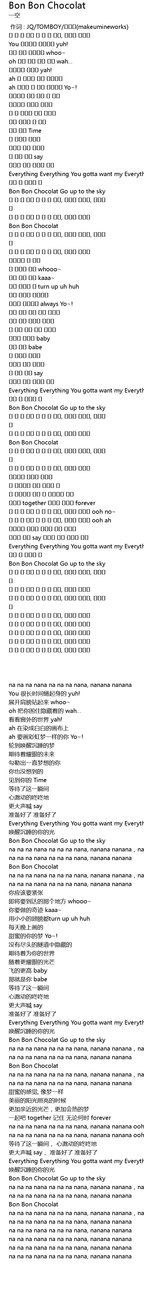 | [00:58.571] | Bon Bon Chocolat Go up to the sky |