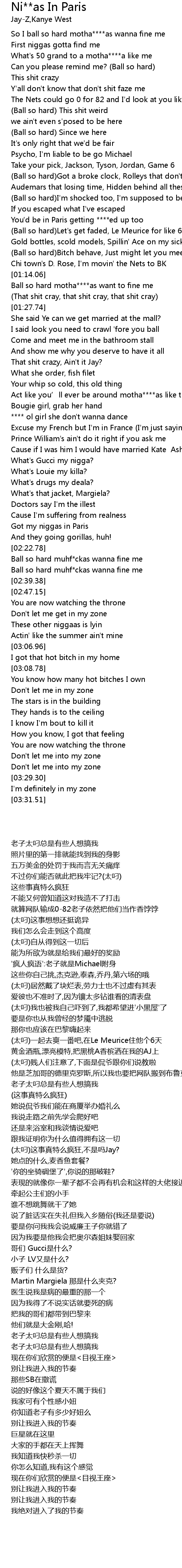 | [02:18.99] | Got my niggas in Paris |