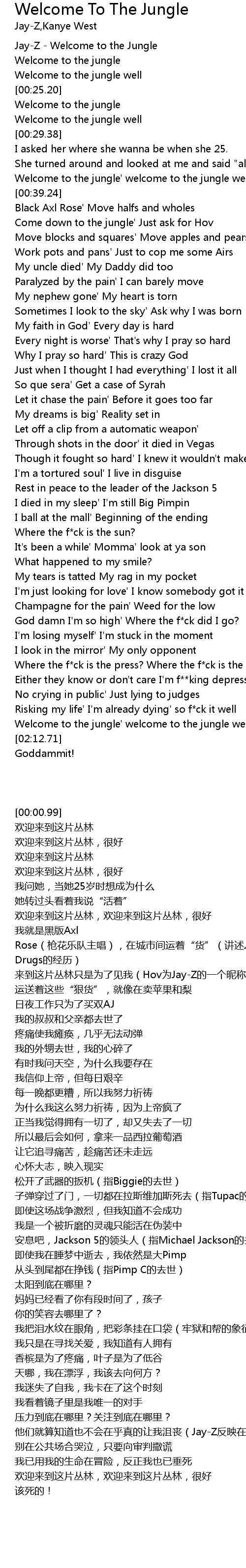 Jay-Z - Welcome to the Jungle |
