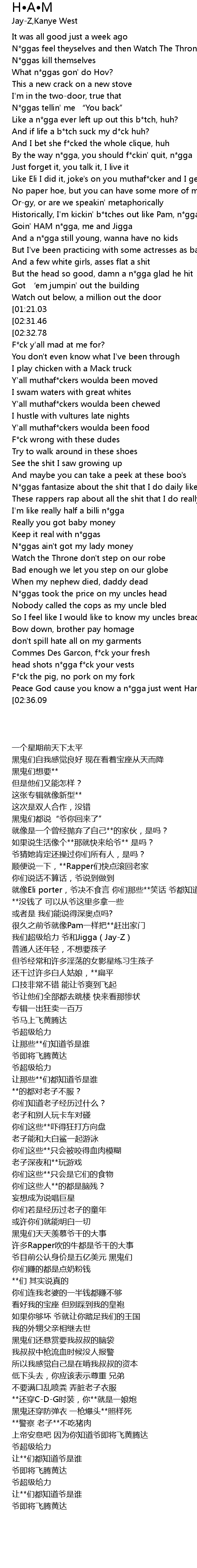 | [02:28.92] | Peace God cause you know a n*gga just went Ham |