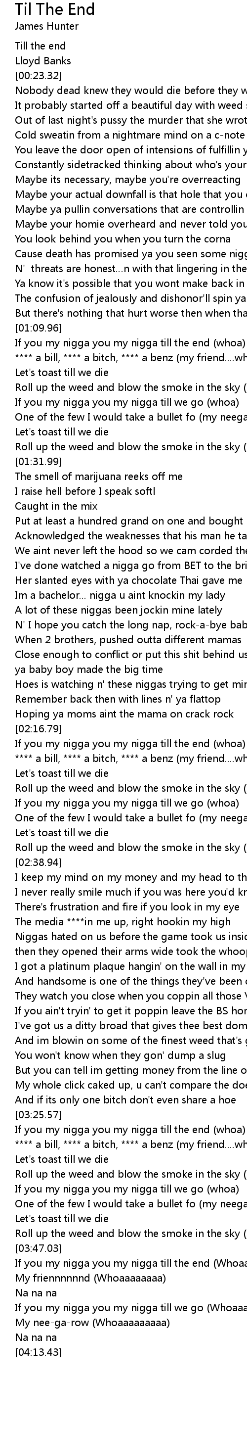 | [03:25.88] | If you my nigga you my nigga till the end whoa |