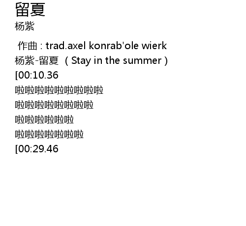 | [00:00.91] | 杨紫-留夏 (Stay in the summer) |