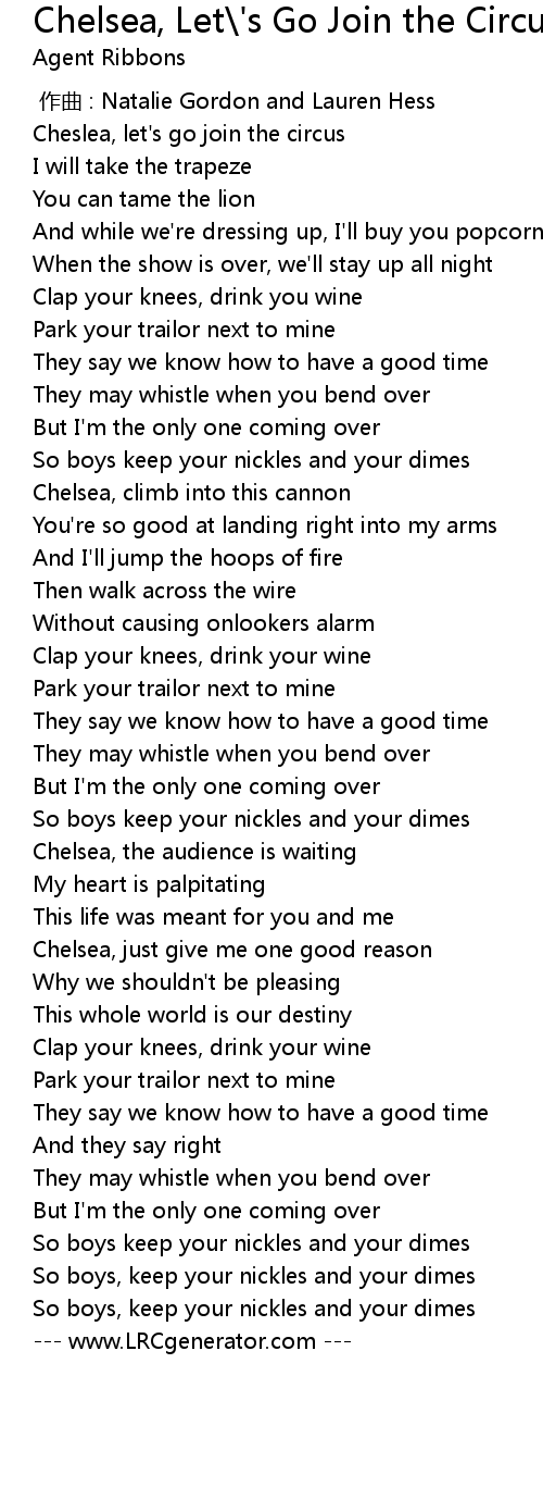 | [00:10.35] | Cheslea, let's go join the circus |