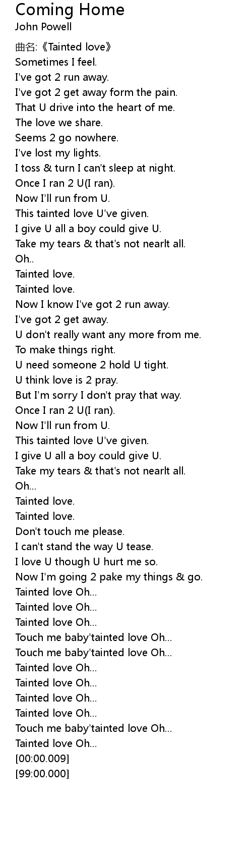 | [02:18.01] | Touch me baby'tainted love Oh... |