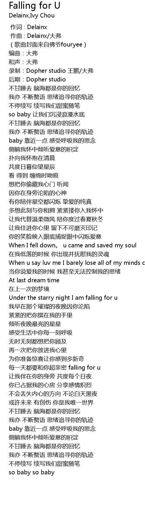 | [01:40.647] | When I fell down。 u came and saved my soul |