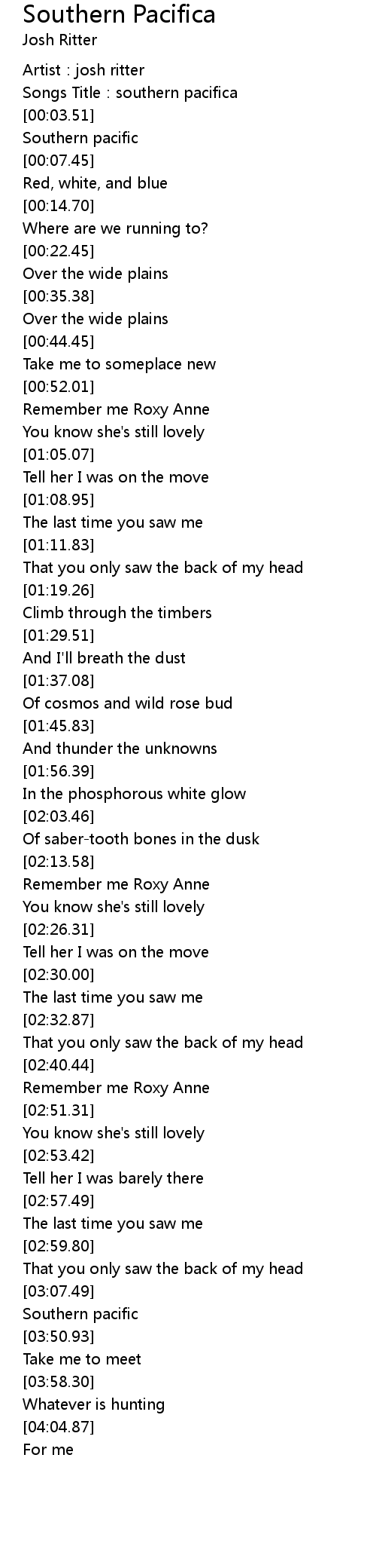 | [03:49.18] | Southern pacific |