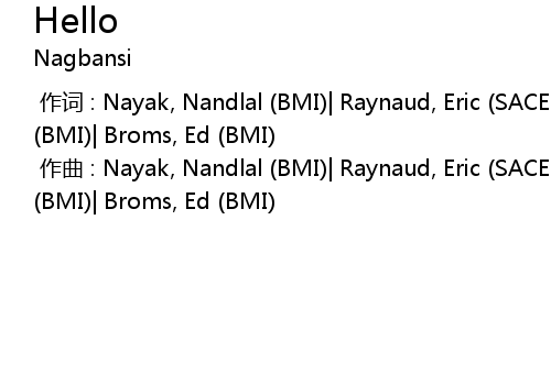 | [00:00.000] | zuo ci : Nayak, Nandlal BMI Raynaud, Eric SACEM Dalinian, Dani BMI Broms, Ed BMI |