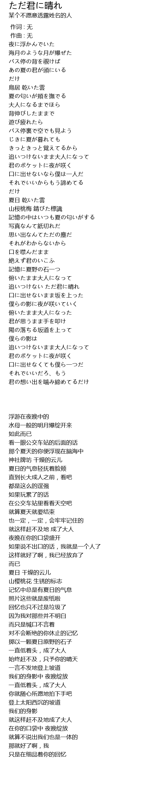 | 歌曲 | ただ君に晴れ |