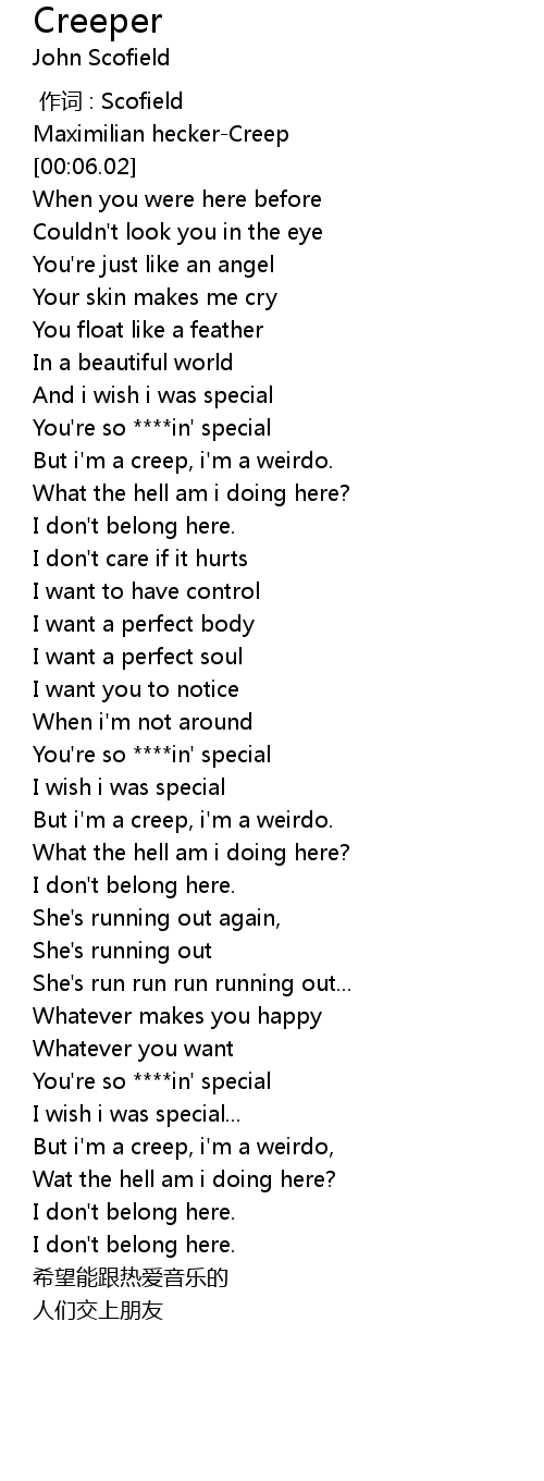 | [01:22.08] | But i'm a creep, i'm a weirdo. |